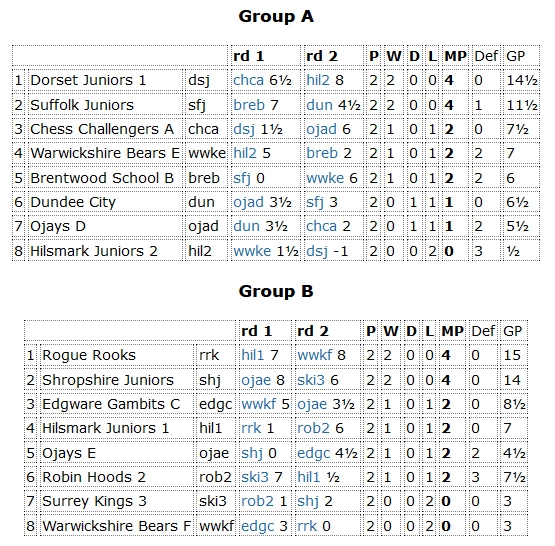 This moves Dorset Juniors 2 up to 7th place in Division 4.